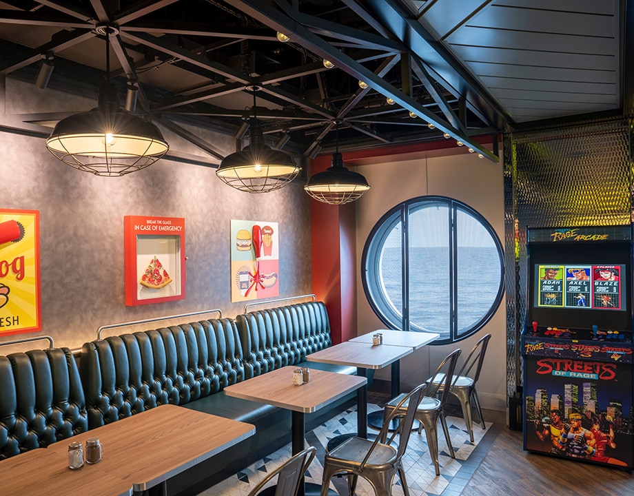 Vibrant fun for adults and children of all ages, this on-deck lounger bar is a perfect escape and meeting place. Add sparkle to any moment with its colorful cocktails and fabulous non-alcoholic long drinks, beers, soda floats and freestyle coke machine. When the temperature rises, you’ll love the authentic gelato ice cream in sugar waffle cones, zinged up with your choice of flavorful toppings.